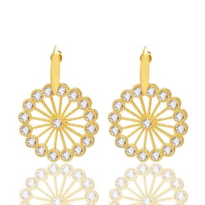 Brinco Redondo Com Pedras Cristal Folheado A Ouro 18k