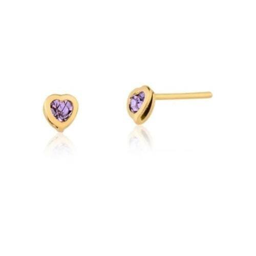 Brinco Feminino Segundo Furo Coração Lilás Folheado a Ouro, fique linda em todos os momentos com designer diferenciado e qualidade que você vai amar, arrase