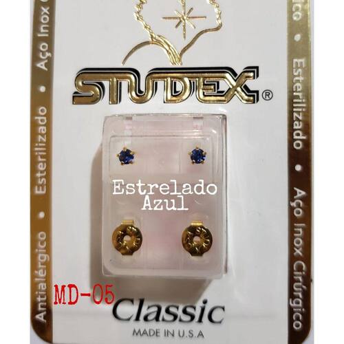 Brinco Studex Classic 4Mm Tiffany Azul Safira Medio Dourado - COR: DOURADO