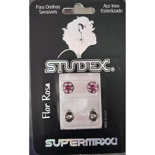 Brinco Studex Supermaxxi Prateado Flor Rosa Ld66023w