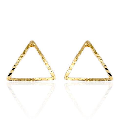 Material: Folheado a ouro 18k Design: Triangular, leve e confortável Tamanho: 1,1cm x 1,1cm Acabamento: Polido, com brilho intenso Fecho: Pino e tarraxa, fácil de colocar e seguro Hipoalergênico: Ideal para peles sensíveis