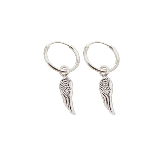 Par de Aros de Oreja com colgante - AlasMaterial: Prata 925Tipo de fecho: InsertadoDiâmetro exterior da argola: 12 mmDiâmetro interior da argola: 10 mmLargura total: 27 mm