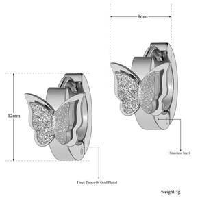 Brinco de borboleta em aço inoxidável banhado a ouro 18k