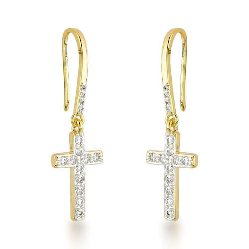 Brincos Com Gancho E Cruz De Zircônias Cristais Banhados A Ouro 18k Brincos com Gancho e Cruz de Zircônias Cristais Banhados a Ouro 18k - Brincos com Gancho e Cruz de Zircônias Cristais Banhados a Ouro 18k Deslumbre com esses Brincos com Gancho e Cruz de Zircônias Cristais Banhados a Ouro 18k, uma união de fé e elegância. Com medidas de 2,9cm de altura e 0,9cm de largura, estas peças são adornadas com brilhantes zircônias cristais, realçadas pelo brilho do ouro 18k. O design com gancho assegura conforto e facilidade de uso, tornando-os perfeitos para o dia a dia ou ocasiões especiais.