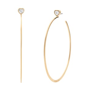 Michael Kors Brincos de argola dourados para mulheres; brincos femininos de aço inoxidável; joias femininas, Metal, Cristais - A coleção de joias Michael Kors é projetada para um apelo atemporal. Feito de materiais hipoalergênicos como aço inoxidável e latão com detalhes brilhantes, ricos em detalhes com qualidade duradoura. - Designs modernos detalhados com mensagens de amor! Estes brincos de argola grandes apresentam um cristal de corte de coração que certamente fará uma declaração. - Estes brincos de argola apresentam aço inoxidável dourado e fechos. - Comprimento 65 mm, largura 5 mm, altura 59 mm - Fecho: Poste - Acabamento: Polido