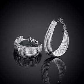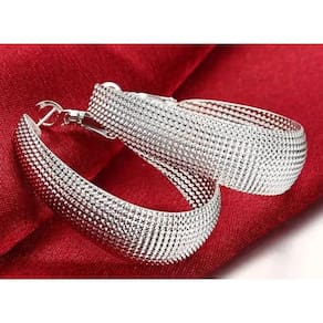 Lindo par de brincos, em formato de argolas, perfeito para qualquer ocasião, com a elegância da beleza feminina. Peças de excelente qualidade, delicadas, sofisticadas e modernas. Detalhes: Material de prata 925, de excelente qualidade. Tamanho: 4 cm x 2 cm Origem: Produto Fabricante: Aravant Conteúdo da embalagem: 1 par de brincos e 1 caixa para manter as peças protegidas. Antialérgico livre de cádmio, níquel e Cinza. As bijuterias finas são banhadas em ouro, prata ou ouro branco e como qualquer peça banhada este banho pode sofrer desgaste independente de sua qualidade. Existem fatores que aceleram este processo: suor, contato com produtos químicos produtos de limpeza e cosméticos , cloro de piscina, água do mar, sabonete, entre outros produtos que podem agredir o banho da peça, fazendo com que ela volte à cor do Aço. Peças banhadas devem ser limpas apenas com uma flanelinha, de maneira leve. Seguindo estas dicas você terá sua peça por mais tempo. Ideal para ser Utilizado em ocasiões especiais. Uma ótima opção para presentear alguém especial. Marca: Não Informado