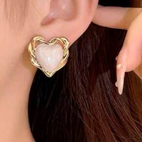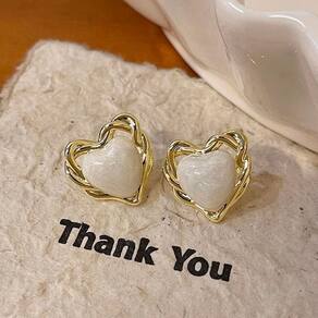 Com um design delicado em formato de coração, esses brincos exalam feminilidade e charme. A combinação do branco e dourado traz um ar de elegância e requinte, tornando esses brincos ideais para ocasiões mais formais, como casamentos, formaturas e festas de gala.