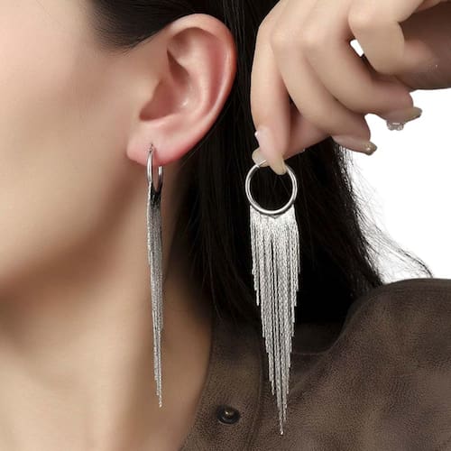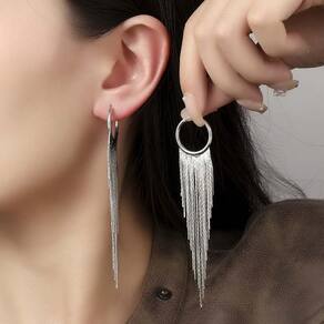 Os brincos femininos com franja e argola solta são a escolha perfeita para arrasar nas festas. O tom prateado traz um toque de sofisticação e elegância, garantindo que você se destaque em qualquer ocasião. Além disso, a leveza e movimento da franja dão um charme especial a essa peça única.
