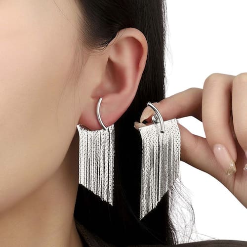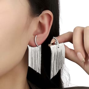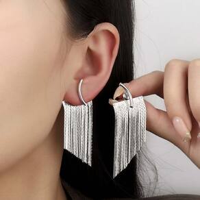 Brincos Femininos Franja Meia Lua Casamento Festas Prateado