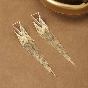 Brincos Femininos Franja Triângulo Strass Mulheres Casamentos