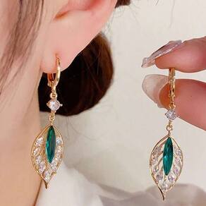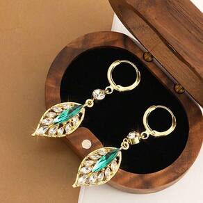 Os brincos femininos longos com folha de strass e esmeraldas são a escolha perfeita para arrasar em festas e eventos especiais. Com um design elegante e sofisticado, esses brincos irão adicionar um toque de glamour e estilo ao seu visual.