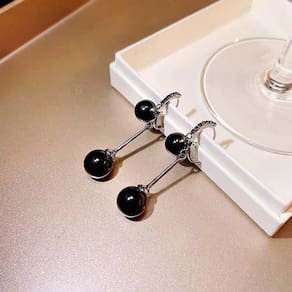 Brincos Femininos Pendentes Pérola Negra Moda Coreana