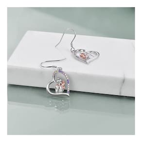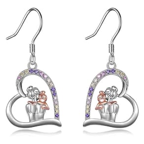 Brincos de peito e coração de filha excelentes e elegantes em prata esterlina 925 com zircões de qualidade AAA.\ nMaterial: feitos de prata esterlina 925 e ouro rosa 18K. Bath, hipoalergênicos e não danificam a pele. E a técnica de polimento torna cada detalhe macio e brilhante. Dicas de cuidados com suas joias: guarde suas joias separadamente para evitar arranhões. Fique longe de produtos químicos, sabonetes e piscinas. Creme hidratante, protetor solar e perfumes. Esfregue suas joias com um pano de polimento para recuperar o brilho. Todas as nossas joias têm um tratamento chamado ródio: O banho de ródio ou ródio é um processo de eletrólise por imersão, amplamente utilizado em joias de alta qualidade para acabamentos de alta qualidade. O Rodio é um metal precioso pertencente à família Platinum. Este banheiro oferece às nossas joias mais resistência a arranhões e manchas, além de um acabamento mais brilhante.\ n\ nInformações da embalagem:\ n1 par de argolas para peito e coração infantil\ n1 caixa de presente de joias.