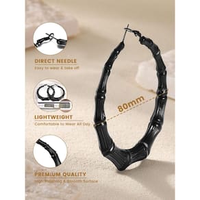 Pacote: 1 par de brincos, 1 bolsa de veludo, 1 caixa de presente de joias Nossos brincos de argola de bambu apresentam: As argolas leves têm design chique, aparência brilhante e confortáveis de usar. Feito de aço inoxidável 316L, hipoalergênico, livre de alérgenos, sem níquel, sem cádmio, sem grafite. O design de clipe seguro torna os brincos de prata esterlina para mulheres fáceis de abrir e fechar Diferentes opções de brincos de tamanho: 40 mm, 60 mm, 80 mm Brincos simples perfeitos para diferentes roupas da moda: vestido deslizante, vestidos de clube e saída à noite, vestidos casuais, tops curtos, estilo Y2K, biquíni. Diferentes opções de brincos de cores: aço inoxidável, ouro, preto Adequado para diferentes ocasiões, como noivado, aniversário, casamento, formatura, festa, coquetel. - Brincos de argola preta: Feito de aço cirúrgico 316l, hipoalergênico, seguro para orelhas sensíveis. O revestimento preto espesso e um acabamento brilhante mantêm esses aros brilhando. Sem grafite, cádmio e níquel para uso sem preocupações - Argolas leves para mulheres: 8,3 mm de espessura, 80 mm de diâmetro, 18,8 g por par, argolas de orelha são muito leves, confortáveis de usar o dia todo - Fecho seguro e flexível: o design de fecho de clique desses brincos de argola para mulheres garante um ajuste seguro enquanto ainda é fácil de colocar e tirar. O fio auricular suave e bem trabalhado é projetado para conforto, adapta-se a uma ampla variedade de tamanhos de orelha sem qualquer irritação, mesmo após uso repetido. - Perfeito para qualquer ocasião: Eleve seu estilo sem esforço com nossos brincos de bambu, a mistura perfeita de simplicidade e sofisticação. Seja casual em jeans ou vestido para uma ocasião especial, essas argolas versáteis complementam qualquer roupa, fazendo você brilhar onde quer que vá. - Presentes modernos para ela: Embalado em uma caixa de presente requintada, presente perfeito para mãe, esposa, avó, melhor amiga, amante no dia dos namorados, Natal, aniversário, dia das mães, festa dos anos 90, casamento, noivado, feriado, etc.