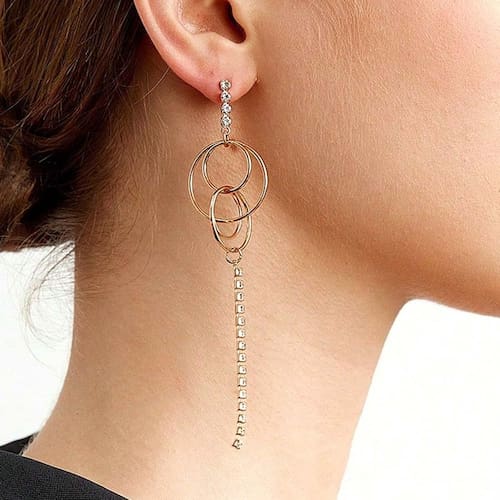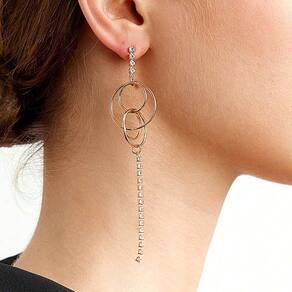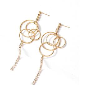 Brincos Longo Argolas Strass Luxo Mulheres Strass