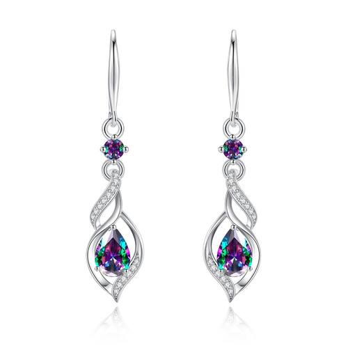 FANCIME Presente para mulheres, brincos com pingente de pedra do mês de nascimento em gota, prata esterlina S925, infinito, presente de aniversário para mães e mulheres, Prata esterlina, Alexandrita