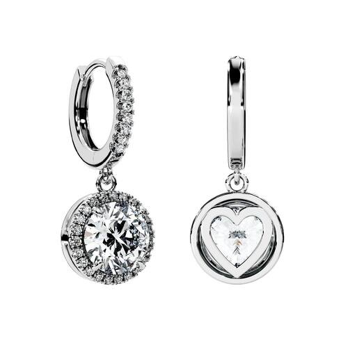 Estes brincos apresentam uma pedra central de moissanite radiante cercada por uma auréola de detalhes brilhantes de moissanita, proporcionando um brilho que supera em muito as alternativas de zircônia.