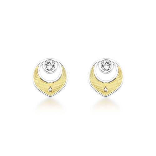 Os Brincos Sol Poente com cristal e revestimento ouro chegaram para expressar a forma mais radiante dos raios do sol.