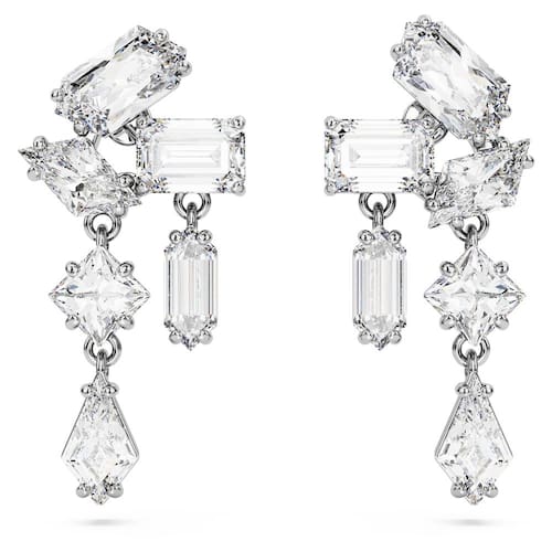 Swarovski Coleção de joias Mesmera Crystal, Zircônia cúbica, Zircônia cúbica - Medidas: Tamanho: 2,7 x 1,2 cm, Peso (peça individual): 2,3 g - Detalhes meticulosos: apresentando uma ampla variedade brilhante de pequenas pedras de corte misto em um acabamento de ródio, estes brincos deslumbrantes dão a ilusão de que as pedras estão dançando quando captam a luz - Torne-o hipnotizante: Chame atenção com estes brincos brilhantes de alta moda, uma joia única que instantaneamente eleva qualquer roupa para o próximo nível com seu conjunto hipnótico de cristais - Arte refinada: Estes brincos deslumbrantes fazem parte da coleção Mesmera, projetados para mostrar a beleza hipnotizante dos cristais Swarovski como um ótimo complemento para sua coleção de joias - Projetado para durar: as joias Swarovski mantêm seu brilho quando práticas de cuidados simples são observadas; remova antes de entrar em contato com água, loções ou perfumes e polir com um pano sem fiapos - Itens entregues: (1) Conjunto de brincos Swarovski Mesmera com pequenas pedras transparentes de corte misto em acabamento de ródio, completo com caixa de brincos Swarovski