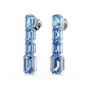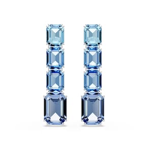 Swarovski Brincos Millenia Drop, corte octógono, gradiente de cor, azul, acabamento de ródio, Cristal, Cristal - Tamanho: 1 3/4 x 3/20.3 cm - Comece o dia em cores vivas com estes brincos perfurados sensacionais - Cada peça luminosa é banhada a ródio e apresenta um gradiente de quatro cristais de corte octogonal - Uma escolha legal e cativante que certamente atrairá a atenção - Este produto contém pelo menos 30% de cristais Swarovski ReCreated, nossos cristais mais sustentáveis até hoje