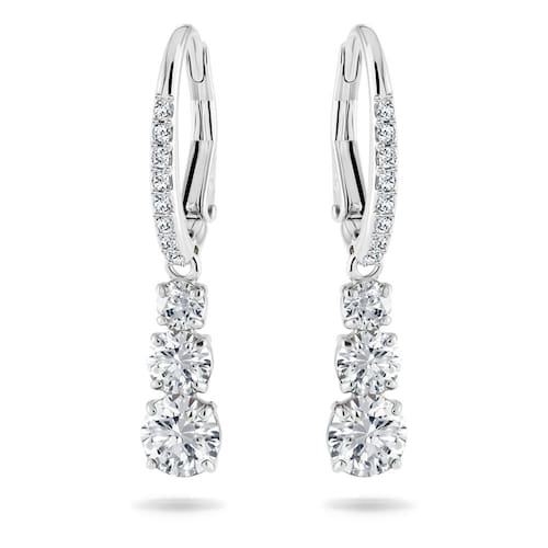 Swarovski Attract Trilogy Coleção de joias de colar e brincos de cristal, Cristal, Cristal - O tamanho do item pode parecer maior na imagem: o tamanho real é de 2,9 cm de comprimento x 0,5 cm de largura (com base na maior largura da pedra) - Brilhante vívido: um trio de cristais transparentes é embelezado com pavé e revestimento de ródio neste design cintilante que é atemporal e será uma lembrança preciosa - Projetado para durar: as joias Swarovski manterão seu brilho ao longo do tempo quando práticas simples de cuidado forem observadas; remova antes de entrar em contato com água, loções ou perfumes para prolongar a vida útil de suas joias - Elegante e atraente: a versatilidade desses brincos de gota os torna um acessório moderno para o dia a dia, uma adição glamorosa para ocasiões mais formais ou um presente encantador para sua amada - Itens entregues: 1 x conjunto de brincos Swarovski Stilla Attract Trilogy com cristais brancos em uma configuração banhada Swarovski ródio e fecho articulado, completo com uma caixa de brincos - Prata banhada a ródio
