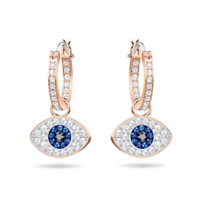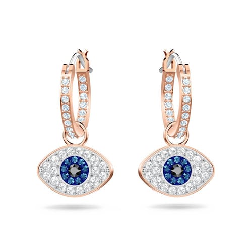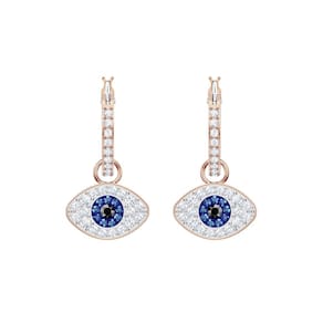 SWAROVSKI Coleção simbólica de joias de cristal de olho turco, com colares, brincos e pulseiras, cristal, ouro rosa, Cristal - Simples e elegante: estes mini brincos de argola banhados a ouro rosa combinam a precisão e a qualidade da Swarovski com a proteção mística do olho turco, para um acessório moderno e atraente - Minimalista e exclusivo: este conjunto de brincos apresenta argolas que abraçam as orelhas com um destaque de pavé de cristal transparente e um recurso de colírio turco com pedras azuis, pretas e brancas em uma configuração banhada a ouro rosa - Projetado para durar: as joias Swarovski manterão seu brilho ao longo do tempo quando práticas simples de cuidado forem observadas; remova antes de entrar em contato com água, loções ou perfumes para prolongar a vida útil de suas joias - Versátil e atraente: seja um destaque diário ou um acessório exclusivo para iniciar conversas, estes brincos de argola com olho turco são uma peça delicada que complementará qualquer estilo em qualquer ocasião - Itens entregues: 1 x mini brincos de argola Swarovski Symbolica Collection com detalhe de olho turco, 7/20.3 cm, com caixa de brincos Swarovski