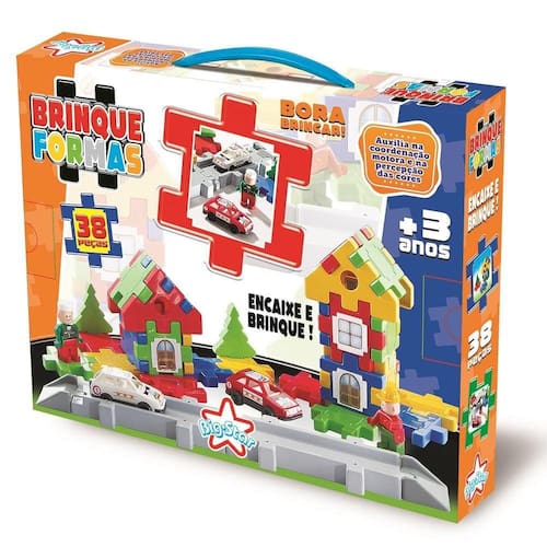 Brinque Formas - Big Star A criança monta o cenário onde irá brincar e interagir formando casas, prédios, pista e se divertindo/interagindo com o que criou. Produto clássico que não pode faltar no PDV. Selo Inmetro: NM 300