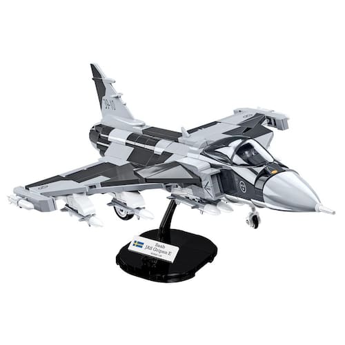 Avião SAAB JAS 39 Gripen E das Forças Armadas da COBI - 480 blocos de alta qualidade - Expositor de blocos com uma placa de identificação do conjunto - Réplica do modelo em bloco em escala 1:48 - 100% impressões, sem adesivos - Instruções claras e intuitivas baseadas em ilustrações e instruções passo a passo - Totalmente compatível com outras marcas de blocos de construção