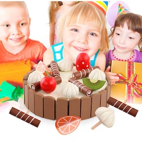 Destaques: Montagem magnética: As fatias se encaixam facilmente com imãs e se separam com a faca de madeira, simulando cortes reais com toque suave Design compacto e temático: tamanho aproximado de 11x3?cm, bem proporcionado para brincadeiras individuais ou com amiguinhos Decoração criativa: inclui diversos elementos decorativos que ajudam a criança a montar diferentes versões do bolo