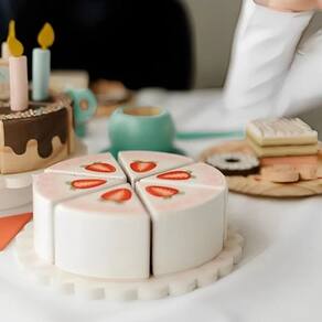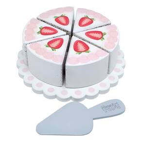 Brinquedo Bolo Fatiado Morango Madeira 6 Pçs Coleção Newart