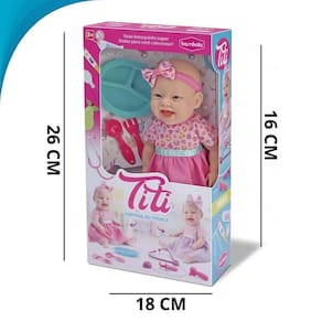 A Titi Papinha é a boneca perfeita para divertir e encantar as crianças Com 34cm de altura, ela vem com acessórios que incentivam o brincar de faz de conta, como uma mamadeira e uma fraldinha, tornando o momento ainda mais realista. Seu corpo é feito de plástico resistente, e o busto, em vinil, proporciona uma sensação macia ao toque. Essa boneca é ideal para crianças a partir de 3 anos, sendo super fofinha e cheia de personalidade.