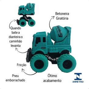 - pneu emborrachado; - quando bate o carrinho levanta; - colorido; - tamanho de cada caminhão aproximadamente: 114 cm c x 11 cm a x 9 cm l ; - peso aproximado: 130g por unidade; - feito em plástico resistente e seguro; - rodas com fricção - desliza fácil em diferentes superfícies; - indicado para crianças a partir de 3 anos. -