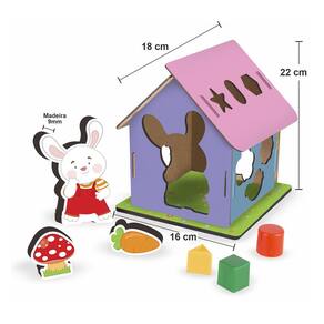 Conteúdo da Embalagem: 07 - Peças de madeira da casinha - 08 - Peças de madeira de figuras para encaixar - 06 - Peças de plástico de formas geométricas para encaixar