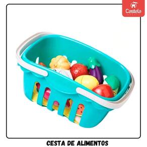 Encante-se com a diversão e a criatividade que a Cesta de Alimentos de Brinquedo com Pratinho e Faquinha Castela proporciona