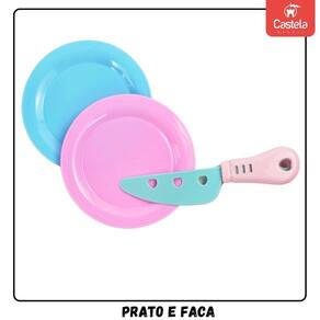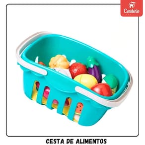 Encante-se com a diversão e a criatividade que a Cesta de Alimentos de Brinquedo com Pratinho e Faquinha Castela proporciona