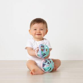 A Baby Ball é uma bola de atividades maleável para a questão tátil da criança, além de ser colorida para aprender a atenção e aprimorar o visual. Possui uma pequena bola dentro da principal com chocalho para estimular a audição.