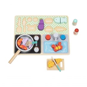 Acessórios de cozinha para brincar: Nossos quebra-cabeças de madeira vêm com comida para brincar e acessórios de cozinha, tornando-os um ótimo complemento para qualquer conjunto de cozinha para brincar.