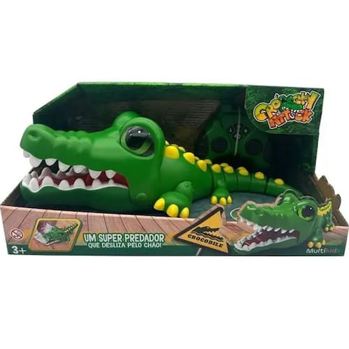Brinquedo Croc Attack - Multikids BR2255 Um super crocodilo de controle remoto que anda para todas as direções, gira, dança e transforma qualquer piso em um pântano infestado de crocodilos