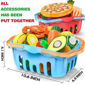 120 peças de brinquedo de cortar alimentos para cozinha Acessórios: 38 itens Vários alimentos, frutas e legumes: pode ser separado em 94 peças (pizza, baguete, carne, peixe, hambúrguer, pimenta, abóbora, pêssego, laranja, fruta do dragão, melancia, abacaxi, pêra, limão, morango, uva, cebola, tomate, brócolis, pimenta verde, batata, cenoura, ovo. planta, repolho, cogumelos, caranguejo, lagosta, cachorro-quente, ovos, camarão, ervilha, milho, banana, kiwi, abacate, romã, laranja, maçã) 2 cestas de armazenamento de compras, 4 facas, 4 tábuas de cortar 4 garfos, 4 colheres 8 pratos, adequado para crianças de 1 a 3, 2, 4, 3 a 5, 4 a 8 anos de idade e acima Este conjunto tem praticamente tudo o que você pode pensar! Tem literalmente toda a comida - inclui não apenas frutas e legumes, mas também alimentos regulares, pizza, pão, peixe e até mesmo uma lagosta, para que as crianças possam comprar e preparar uma variedade de alimentos. Cores muito brilhantes e muitas peças para escolher, são brinquedos suficientes para várias crianças brincarem, mantendo-as ocupadas por um período de tempo brincando de restaurante ou piquenique. Além de 94 peças de alimentos que se separam, você receberá 4 tábuas de corte, 8 pratos, 4 facas e 4 garfos, 4 colheres. As facas e a tábua de cortar ajudam as crianças a praticar fatiar alimentos, brinquedo perfeito para realçar sua imaginação. Tantas peças interativas! Você pode ensinar sua neta sobre frutas e cores enquanto brinca ao mesmo tempo, melhorando a capacidade de seus netos de identificar diferentes frutas, vegetais, grãos e proteínas. Adição perfeita para a cozinha de brincar da filha e do filho/Ótimo para brincar de cozinha de faz de conta. Inclui duas cestas de compras que podem servir como armazenamento para as peças, fácil de limpar e viajar, mantendo as cestas à mão para que você jogue todas as peças de volta dentro delas. Seus 3 anos de idade e seus amigos nunca se cansam de brincar com esses tipos de brinquedos de comida. MAIS IDEIA: Use-o para matemática ao contar dólares e centavos; Pizza é uma boa vantagem, use-a para ajudar a introduzir a ideia de frações ao seu filho; Tábuas de corte suficientes permitindo que os pais - Conjunto de 64 itens para brincar com várias crianças: 38 frutas e legumes diferentes (podem ser separados em 94 peças), 2 cesta de brinquedos, 4 tábuas de corte, 4 facas falsas, 4 colheres, 4 garfos e 8 pratos. - Forneça duas cestas de compras diferentes (vermelho e azul) para duas crianças brincarem juntas e elas podem jogar todas as peças de comida de volta dentro delas, fácil de limpar e armazenar! Ótimo como brinquedo de aprendizagem de todas as séries escolar/sala de aula e jogos interativos - O brinquedo realista é feito de plástico ABS durável de alta qualidade, cheio de detalhes como ovo, milho e ervilha, tem várias camadas, a casca do caranguejo pode ser descascada... O "adesivo" durável pode suportar vários cortes, recomendado para crianças a partir de 3 anos de idade - A grande variedade de alimentos para brincar, inclui não apenas frutas e legumes, mas também alimentos regulares, pizza, pão, peixe e até mesmo uma lagosta, melhorou a capacidade de suas meninas e meninos de identificar diferentes frutas, vegetais e usar sua imaginação. - Conjunto de cozinha para iniciantes ou adição a mais variedade para cozinhar de conta infantil, peças suficientes, facas e pratos para toda a família participar, presente perfeito para suprimentos de creche, Ano Novo, Natal, aniversário, atividade educativa
