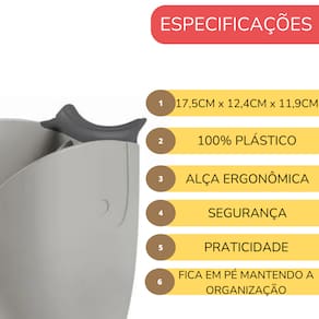 PRATICIDADE: Além de seu design inteligente, a Baleia fica de pé quando não está em uso, economizando espaço e mantendo a higiene.
