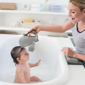 ENXÁGUE EFICAZ: A Baleia para enxágue da Skip Hop possui o tamanho e o formato ideais para permitir que a água escorra, passando por toda a cabeça da criança. Isso garante um enxágue completo, evitando que o shampoo ou o sabonete entrem em contato com os olhos e ouvidos do bebê.