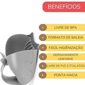A hora do banho pode se tornar mais prática e divertida para bebês e crianças com a Baleia para enxágue da marca Skip Hop. Este produto foi projetado para tornar o processo de enxágue seguro e eficaz, evitando o contato de shampoo ou sabonete com os olhos e ouvidos do bebê. Neste resumo, destacamos os benefícios dessa inovadora Baleia de enxágue, seguidas pelas especificações técnicas do produto.