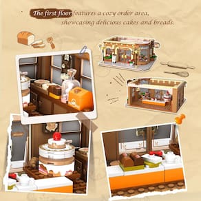 INSOON Conjunto de construção de casa de padaria com luz LED para crianças, meninos, meninas, adultos, adolescentes de 10 a 11 e 12 anos ou mais - Conjunto de montar City Bakery Café – Entre em um paraíso doce e criativo com este kit de blocos de construção de padaria! O primeiro andar possui uma área de pedidos aconchegante, exibindo deliciosos bolos e pães; o segundo andar é uma deliciosa padaria onde sobremesas deliciosas estão sendo feitas; e o piso superior tem um relógio encantador e configuração de iluminação. Cada detalhe é feito com perfeição, com cores vibrantes que fazem você se sentir como se estivesse realmente por dentro, aproveitando a alegria de assar - Efeitos de iluminação cativantes – Este conjunto de brinquedos de padaria vem com dois conjuntos de luzes encantadores, um no primeiro andar e outro no segundo. Quando a noite cai, acenda as luzes e o brilho amarelo quente enche a padaria, lançando uma luz suave através das janelas transparentes e tornando os bolos e pães ainda mais irresistíveis. Cada luz dá vida ao doce mundo, tornando cada momento delicioso ainda mais especial - Detalhes divertidos – a porta e as janelas transparentes do brinquedo de construção de café no primeiro andar se abrem, dando a você a chance perfeita de admirar cada detalhe encantador dentro. As janelas e a placa são adornadas com padrões fofos e peculiares, adicionando um charme único. O relógio na lateral pode ser aberto para ajustar os ponteiros manualmente ou controlado com um botão na parte de trás – gire-o agora para definir o tempo de cozimento perfeito - Artesanato premium – Este modelo de confeitaria é composto de 1289 peças projetadas com precisão, feitas de material ABS suave e sem rebarbas. A montagem é simples e resistente, tornando-a perfeita para crianças a partir de 8 anos de idade para completar de forma independente. Cada peça é cuidadosamente projetada para garantir uma experiência de construção divertida e suave. À medida que constroem, as crianças não apenas desfrutam da alegria da criação, mas também desenvolvem paciência e foco, tornando o processo tão gratificante quanto o produto final - Escolha de presente perfeita – seja para um aniversário, Páscoa, Natal, Ação de Graças ou Dia dos Namorados, este conjunto de tijolos de confeitaria é o presente perfeito. Adequado para crianças, adolescentes, adultos e qualquer pessoa que ame assar ou construir com tijolos, oferece horas de diversão e criatividade. Torne esta temporada de férias ainda mais doce e significativa com um presente que continua dando