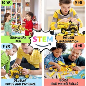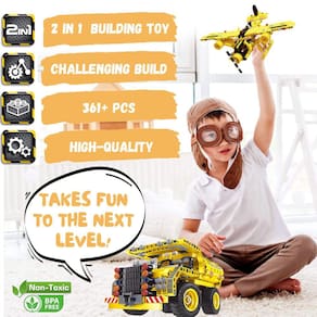 O melhor da educação STEM: este caminhão basculante de avião de brinquedo 2 em 1 para construção é mais do que apenas um brinquedo - é uma ferramenta para aprender. Seu filho desenvolverá habilidades de resolução de problemas, coordenação olho-mão e muito mais.