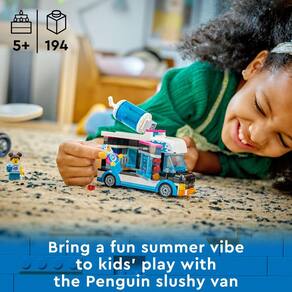 - Van penguin Slushy – Caminhão de brinquedo LEGO City Great Vehicles com janela de servir, 4 máquinas lamacentas e 2 miniaturas para crianças a partir de 5 anos de idade.