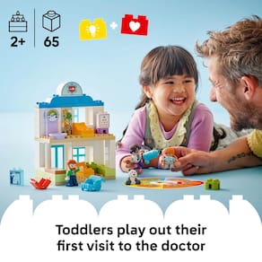LEGO DUPLO Town First Time Visit with The Doctor Office Building - Brinquedo educativo e de aprendizagem pré-escolar para crianças, meninos e meninas, a partir de 2 anos - Ideia de presente para bebê - Brinquedo médico – As crianças podem explorar sentimentos e jogar diferentes cenários e rotinas com o LEGO DUPLO Town First Time: Visite com o kit Doctor Playset - Brincadeira interativa – Este brinquedo de aprendizagem pré-escolar vem com 4 bonecos: figuras de adulto, criança e médico, além de um boneco de ursinho de pelúcia – dando às crianças oportunidades de brincar de conta - Brinquedo sensorial: o conjunto de brinquedos hospitalares de 2 andares mergulha as crianças em brincadeiras imaginativas enquanto elas recebem uma dose com a seringa de brinquedo, fazem um raio-X ou verificam sua altura e peso - Brinquedo educativo e educativo: as crianças desenvolvem habilidades motoras finas enquanto constroem este brinquedo, abrindo as janelas articuladas de brinquedo e aprendendo a observar e imitar suas próprias experiências de consulta médica - Presentes para meninos e meninas – Este é o presente de brinquedo ideal para crianças a partir de 2 anos que gostam de brincar com imaginação e explorar emoções - Dimensões – O brinquedo hospitalar mede mais de 25,4 cm. (26 cm) de altura e 19 cm. 19 cm de largura