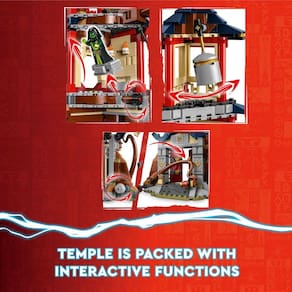 Prêmio definitivo — Este templo Ninja de 4 andares também abriga um núcleo de energia de dragão pelo qual os personagens lutam e que é um item colecionável divertido para fãs apaixonados de NINJAGO