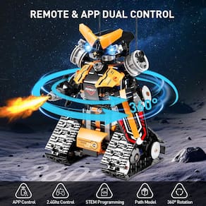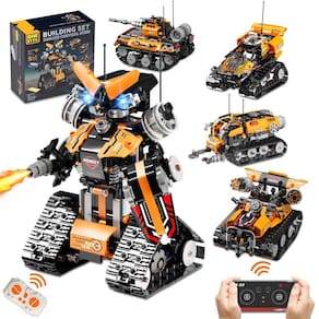 Kit de montar STEM para crianças de 6 a 12 anos, controle remoto 5 em 1 e controle por aplicativo, kit de construção de tanque de carro, 600 peças de blocos de construção educativos DIY para crianças - ??Kit de construção STEM 5 em 1?O kit de montagem STEM pode ser montado em 5 estilos diferentes de modelos. O modelo A é um tanque pesado com grande potência, forte poder de fogo. O modelo B é um robô ninja de combate com características reais. O modelo C é um veículo de detecção de metal realista. O modelo D é um carro de corrida todo-o-terreno com um senso de tecnologia futura. O modelo E é um veículo antiaéreo de tecnologia espacial com uma mente criativa. As crianças podem experimentar a diversão de 5 formas diferentes. - ??Controle remoto e controle de aplicativo?Seja em ambientes internos ou externos, pisos lisos ou terrenos acidentados, este conjunto de construção de carro facilita a condução de dublês. As crianças podem fazer seu carro/robô realizar as ações de sua escolha através do aplicativo ou usando o controle remoto. O aplicativo de codificação é completamente baseado em ícones coloridos e é muito simples e intuitivo, então até mesmo iniciantes em codificação completos podem começar facilmente. Existem muitas maneiras de jogar no aplicativo, como modo de gravidade, modo de caminho, modo de programação STEM e modo de drive. - ??Forte potência e bateria?Todo o módulo de acionamento contém 2 motores de alta velocidade e uma bateria de lítio recarregável de grande capacidade de 3,7 V/500 mAh. 2 pilhas AAA para controle remoto (não incluídas), o tempo de funcionamento é de até 30 minutos. Adequado como a melhor ideia de presente para meninos e meninas de 6 7 8 9 10 11 12 anos e acima. Também é um presente brilhante para aniversário, Dia das Crianças, Dia das Bruxas, Ação de Graças, Natal e Ano Novo. Mais adequado para festas de aniversário, reuniões de família ou brincar com os pais em ambientes internos ou externos. - ??Brinquedos de aprendizagem STEM infantil?Este kit de construção científica integra elementos de engenharia, maquinário, ciência e tecnologia, carros e robôs. As crianças estimulam a criatividade e o desenvolvimento do cérebro conectando blocos de construção para construir brinquedos, ajudam a desenvolver habilidades motoras finas e promovem a coordenação olho-mão das crianças, atenção, resolução de problemas e habilidades de trabalho em equipe. Compatível com a maioria dos blocos de construção semelhantes no mercado, com forte extensibilidade. Divertido e educativo! - ??Brinquedo de construção STEM de controle remoto?Todas as peças do kit de construção QHECTTY são feitas de materiais não tóxicos adequados para crianças, garantindo que sempre possam ser conectadas e desmontadas sempre. Brinquedo seguro com certificação ASTM e CPSIA. Com 600 peças que se encaixam. Este kit STEM inclui um guia passo a passo colorido para exemplos de construção e um aplicativo que até mesmo não-leitores podem seguir. 2,4 G RC suporta 2 ou mais jogadores para jogar juntos! Os pais geralmente gostam de participar!