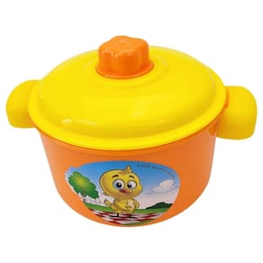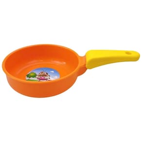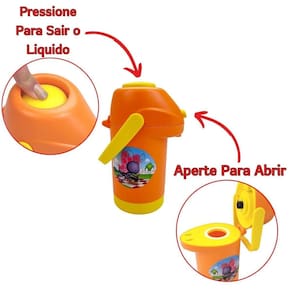 Composto por 10 peças de tamanhos diferentes, este conjunto de cozinha de plástico nas cores laranja e amarelo inclui uma panela de pressão, uma frigideira, uma panela de macarrão, 4 copos, uma garrafa térmica, uma escumadeira e um pegador de macarrão. Todas as peças são decoradas com imagens coloridas da Galinha Pintadinha, tornando a brincadeira ainda mais divertida para as crianças.