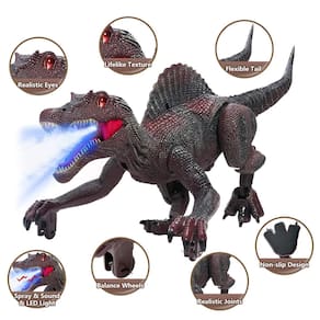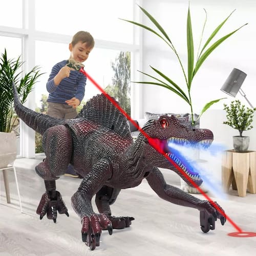 Os brinquedos de dinossauro de controle remoto oferecem uma experiência de jogo emocionante e interativa para crianças, misturando a emoção dos dinossauros com tecnologia moderna. Os brinquedos de dinossauro Richgv apresentam movimentos realistas, efeitos sonoros e luzes, o que os torna altamente atraentes para jovens entusiastas. As principais características incluem a capacidade de andar, rugir e executar várias ações, juntamente com controles fáceis de usar que permitem fácil navegação. Projetado com materiais duráveis e vem equipado com baterias recarregáveis para uso prolongado. Os brinquedos de dinossauro de controle remoto não apenas entretêm, mas também promovem brincadeiras imaginativas e ajudam a desenvolver habilidades motoras finas, garantindo horas de diversão para jovens amantes de dinossauros - Brinquedos de dinossauro para crianças 3-5 5-7: Imagine desligar as luzes à noite e ver os dinossauros brilharem brilhantemente, rugindo e fazendo sons como seus ancestrais pré-históricos. Parece que você foi transportado de volta para o período jurássico! - Diversão multifuncional com dinossauros: basta puxar o gatilho no controle remoto para emitir uma luz vermelha e observar enquanto o espinossauro levanta as pernas e persegue a luz passo a passo! Ao contrário de outros dinossauros de controle remoto, este espinossauro pode andar para frente e para trás, rastrear fontes de luz, borrifar névoa de água e rugir enquanto emite uma luz azul fria. Você também pode operá-lo usando o modo de botão. É como ter um verdadeiro espinossauro na sua sala de estar! - Bateria de longa duração: o Spinosaurus possui uma bateria recarregável integrada que oferece mais de 1 hora de diversão com uma única carga (2 horas), eliminando a necessidade de recarga frequente e garantindo que seu filho possa desfrutar de diversão contínua com dinossauros. O controle remoto requer 3 pilhas AAA (não incluídas) - Demonstração de um botão: com um simples toque, o brinquedo de dinossauro ativa efeitos sonoros e avança enquanto pulveriza automaticamente a névoa e emite rugidos realistas. Sua boca ilumina com uma luz azul, melhorando a experiência geral. Além disso, o dinossauro pode se mover para trás e girar em círculos, tudo isso enquanto continua a borrifar névoa e rugir, com sua boca azul brilhante - Ideias de presente de Natal para meninos de 3, 4, 5, 6, 7, 8 anos: uma experiência emocionante e envolvente para crianças! Brinquedos de dinossauro realistas que brilham no escuro e fazem sons podem realmente despertar a imaginação e transportar as crianças para um mundo pré-histórico. A combinação de efeitos visuais e efeitos sonoros cria uma atmosfera emocionante, especialmente quando as luzes são desligadas. Você está pronto para transformar seu quarto em um paraíso pré-histórico? Pegue mais alguns dinossauros e deixe a aventura começar! - Meias para crianças 3, 4, 5, 6, 7, 8: Este brinquedo de dinossauro de controle remoto é feito de plástico ABS resistente, não tóxico e reciclável para segurança. Seus olhos 3D e pele realista fazem com que pareça um dinossauro de verdade! É o presente perfeito para aniversários, Natal, Ano Novo e Páscoa - Conteúdo da embalagem: 1 espinossauro (tamanho: 35,5 x 16,5 x 16,5 cm), 1 controle remoto de luz vermelha, 1 chave de fenda, 1 cabo de carregamento, 1 mini garrafa d'água. Distância do controle remoto: 10 m, distância da luz vermelha: 300 cm - Dentro de uma linha reta de 300 cm na frente do dinossauro, ele avançará conforme a luz vermelha é projetada, enquanto também pulveriza automaticamente a névoa e emite rugidos realistas, com sua boca brilhando em azul. Quando a luz é direcionada para uma linha reta de 300 metros atrás do dinossauro, ela gira em círculos enquanto continua a borrifar névoa e rugir, com sua boca também brilhando em azul